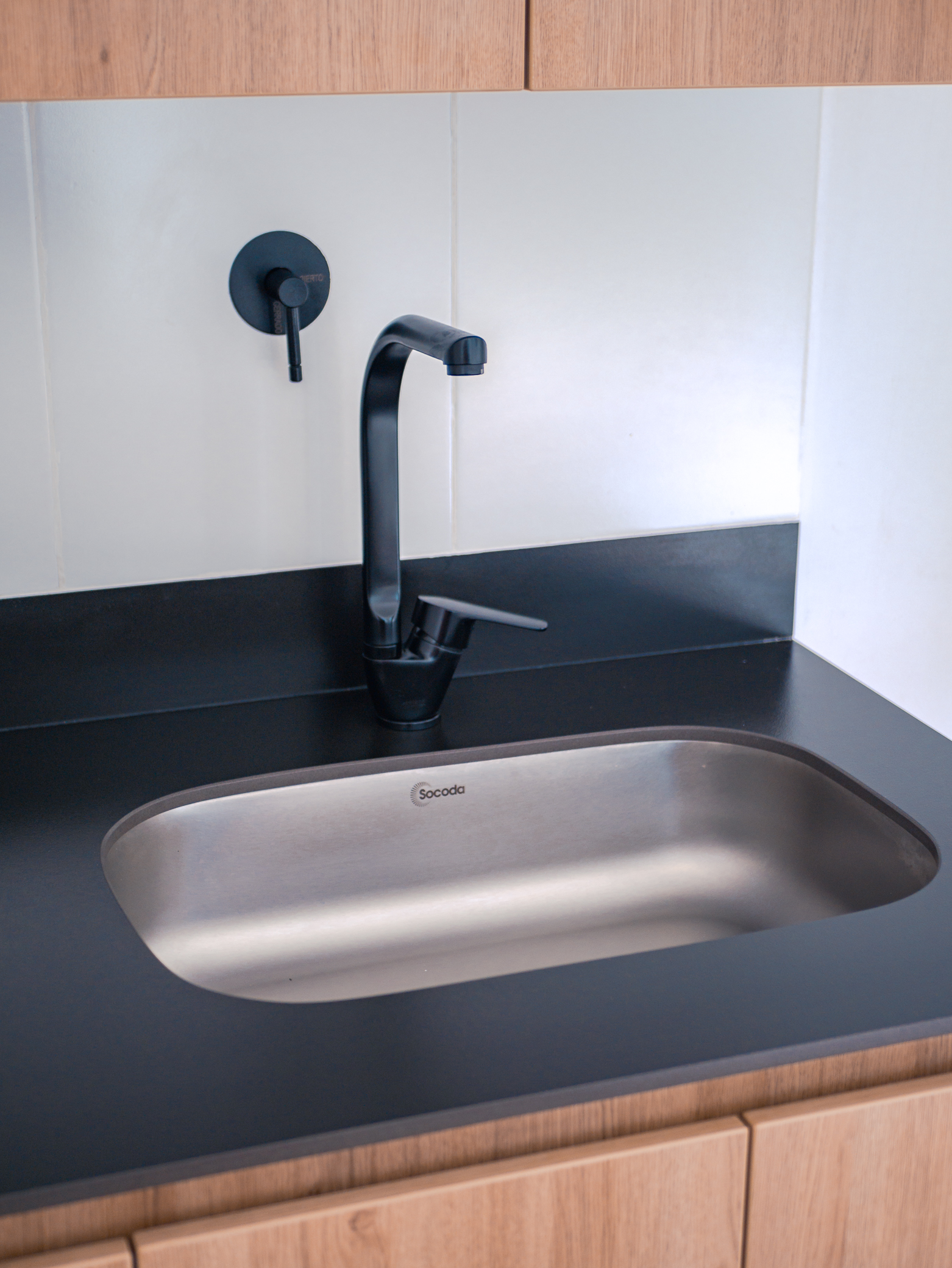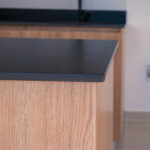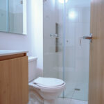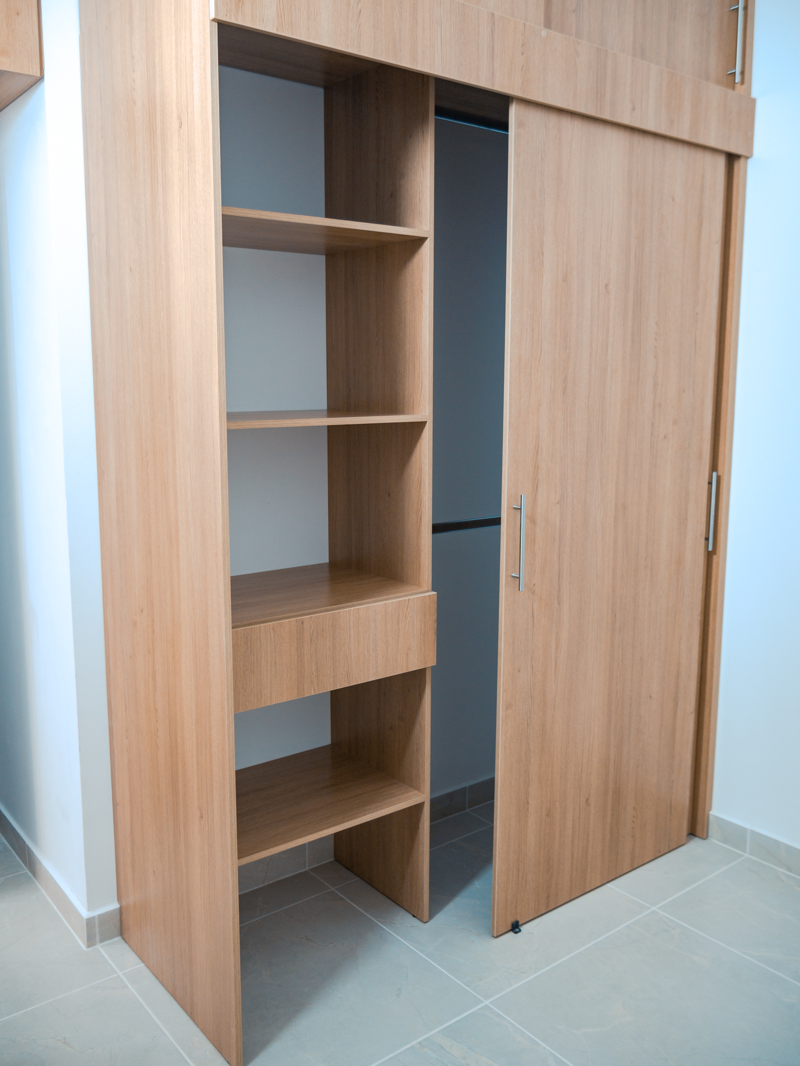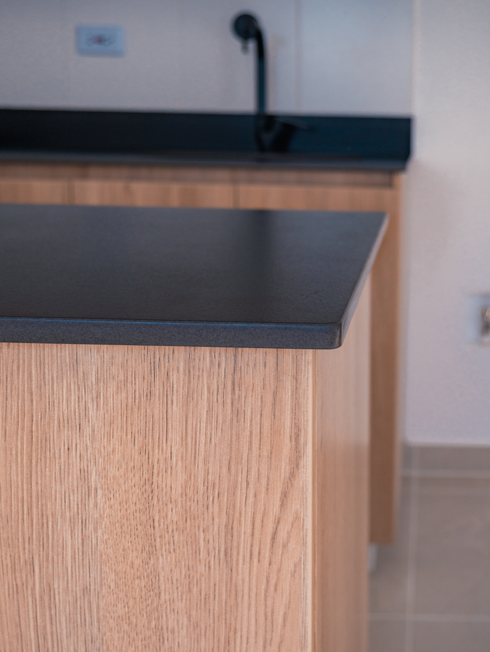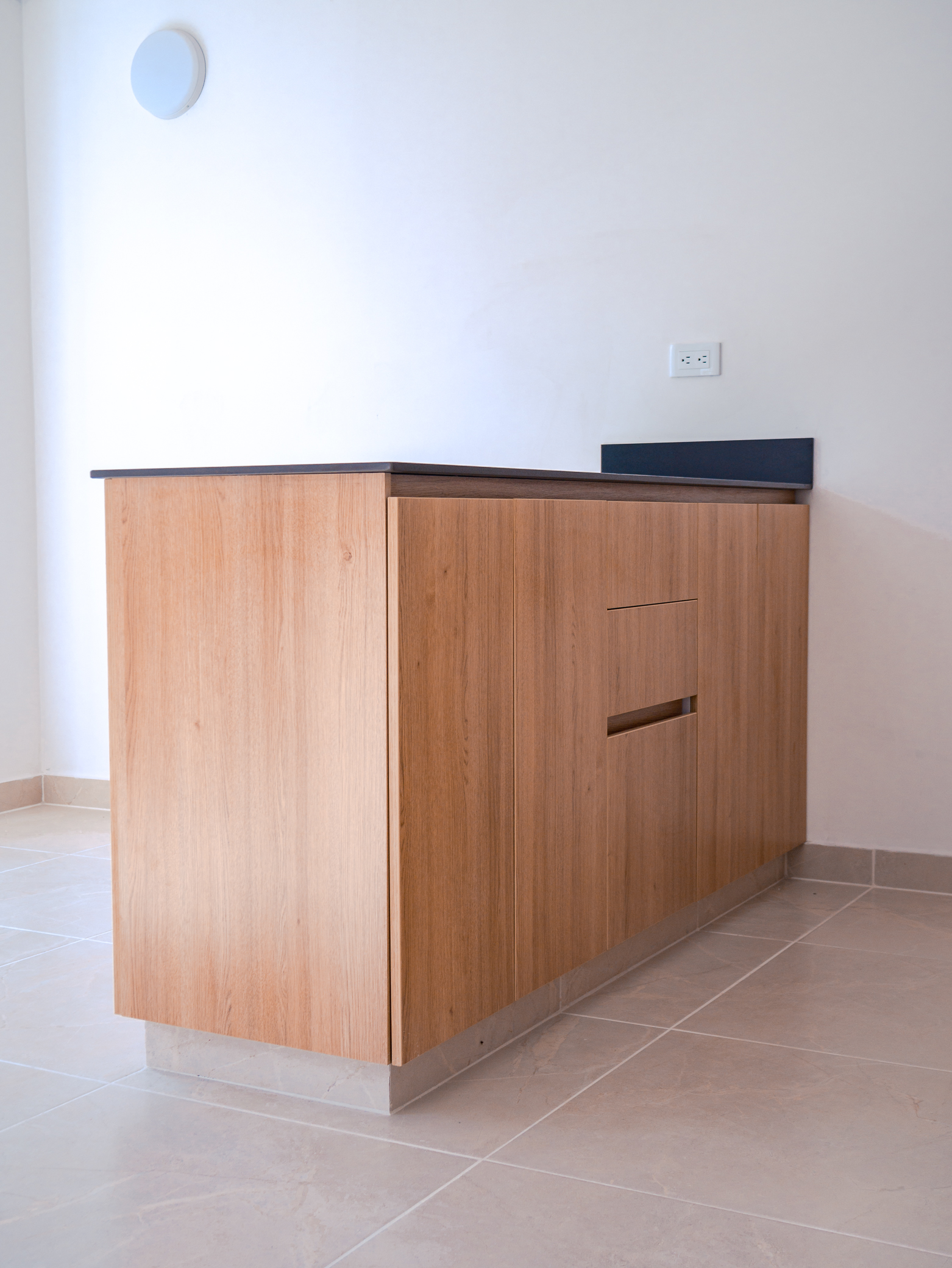 En este proyecto, destacamos la elegancia y el diseño moderno, utilizando tonos pastel en combinación con acabados y accesorios en tonos negros. El uso de piedra sinterizada en el mesón de cocina y la barra aportó un estilo premium y sofisticado, elevando la atmósfera del hogar a un nivel de distinción y refinamiento. Cada elemento fue seleccionado para lograr un equilibrio entre funcionalidad y estética, brindando un espacio elegante y contemporáneo que refleja el gusto y las aspiraciones de sus propietarios.