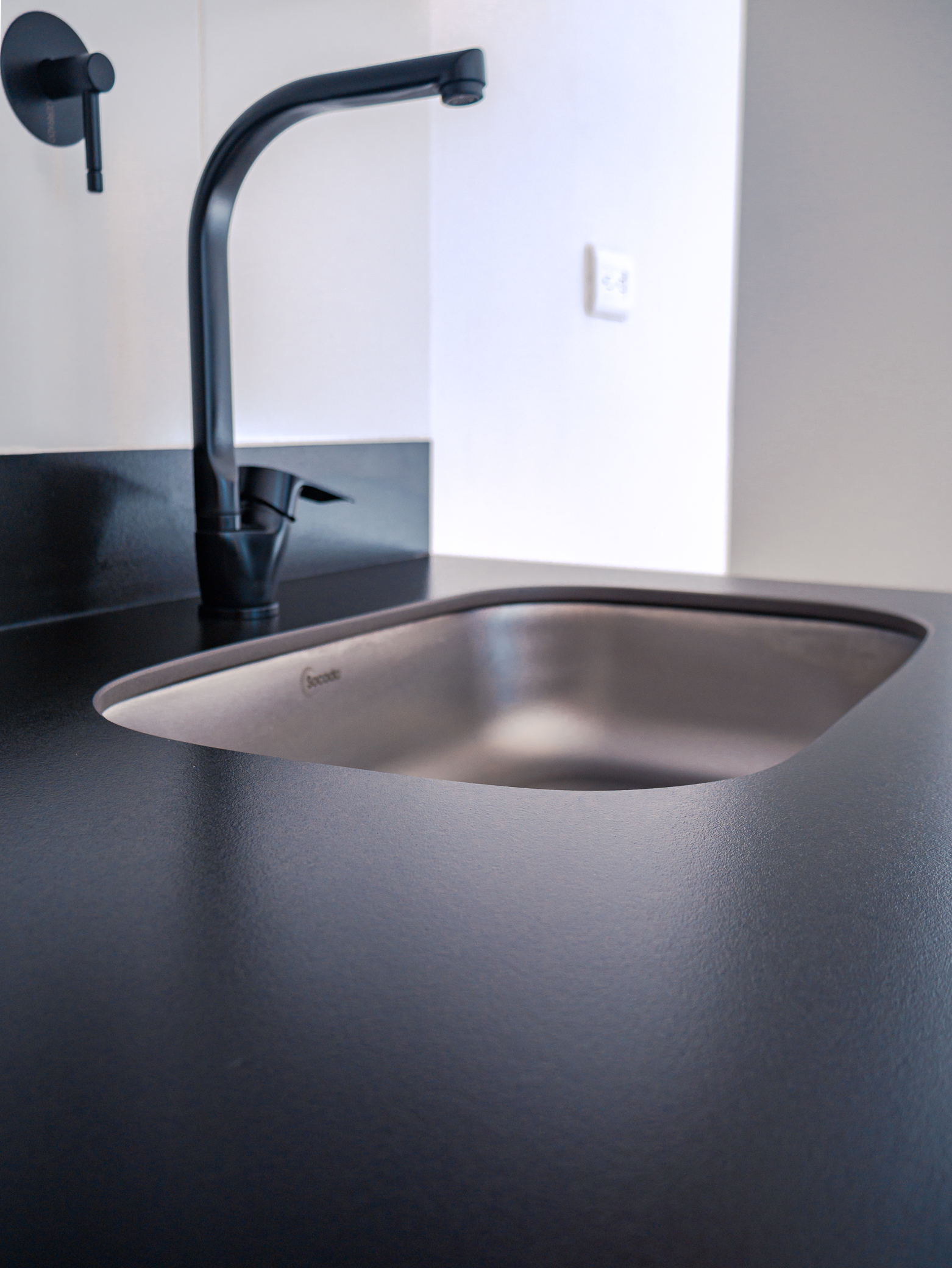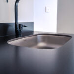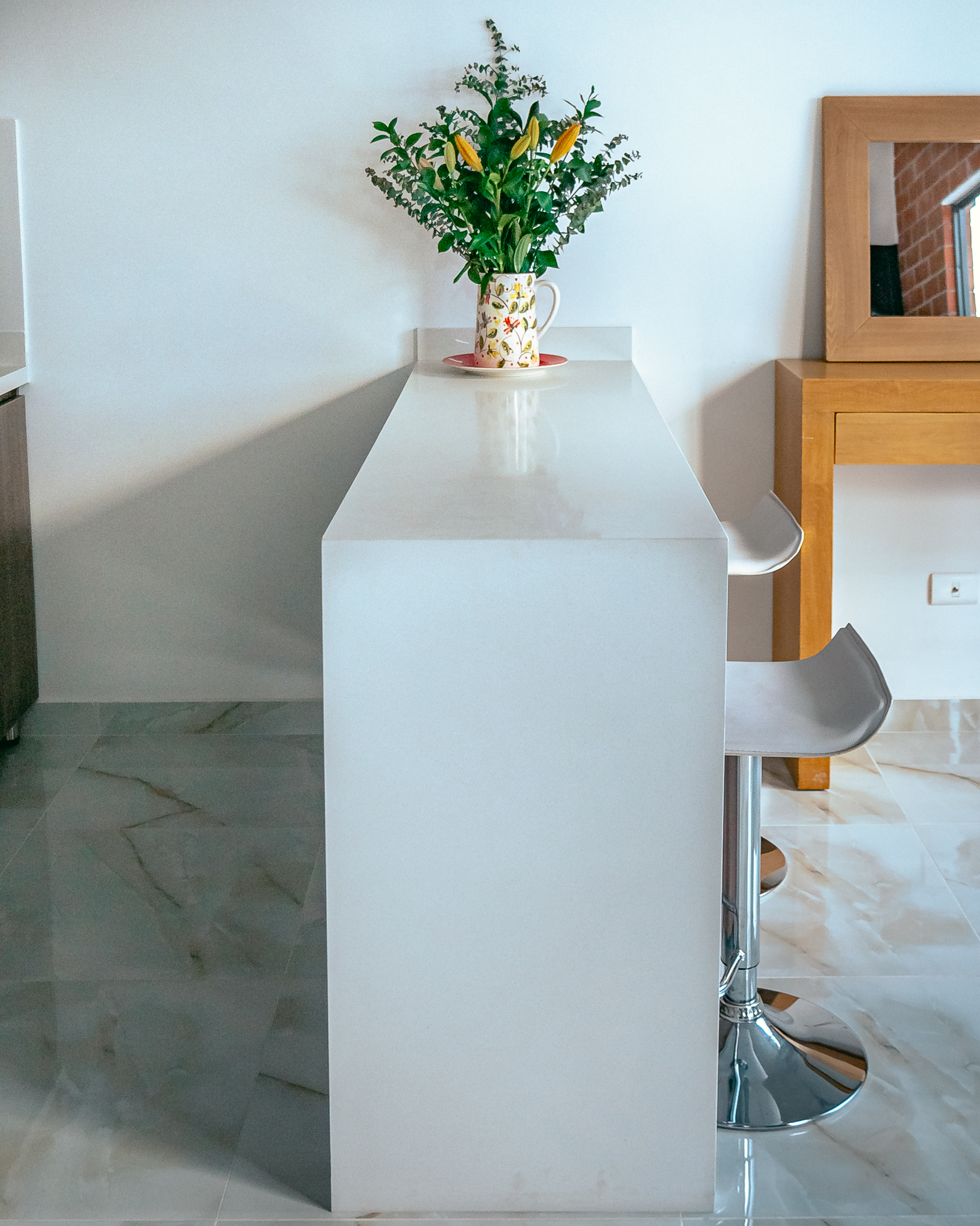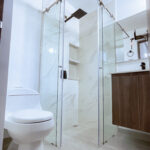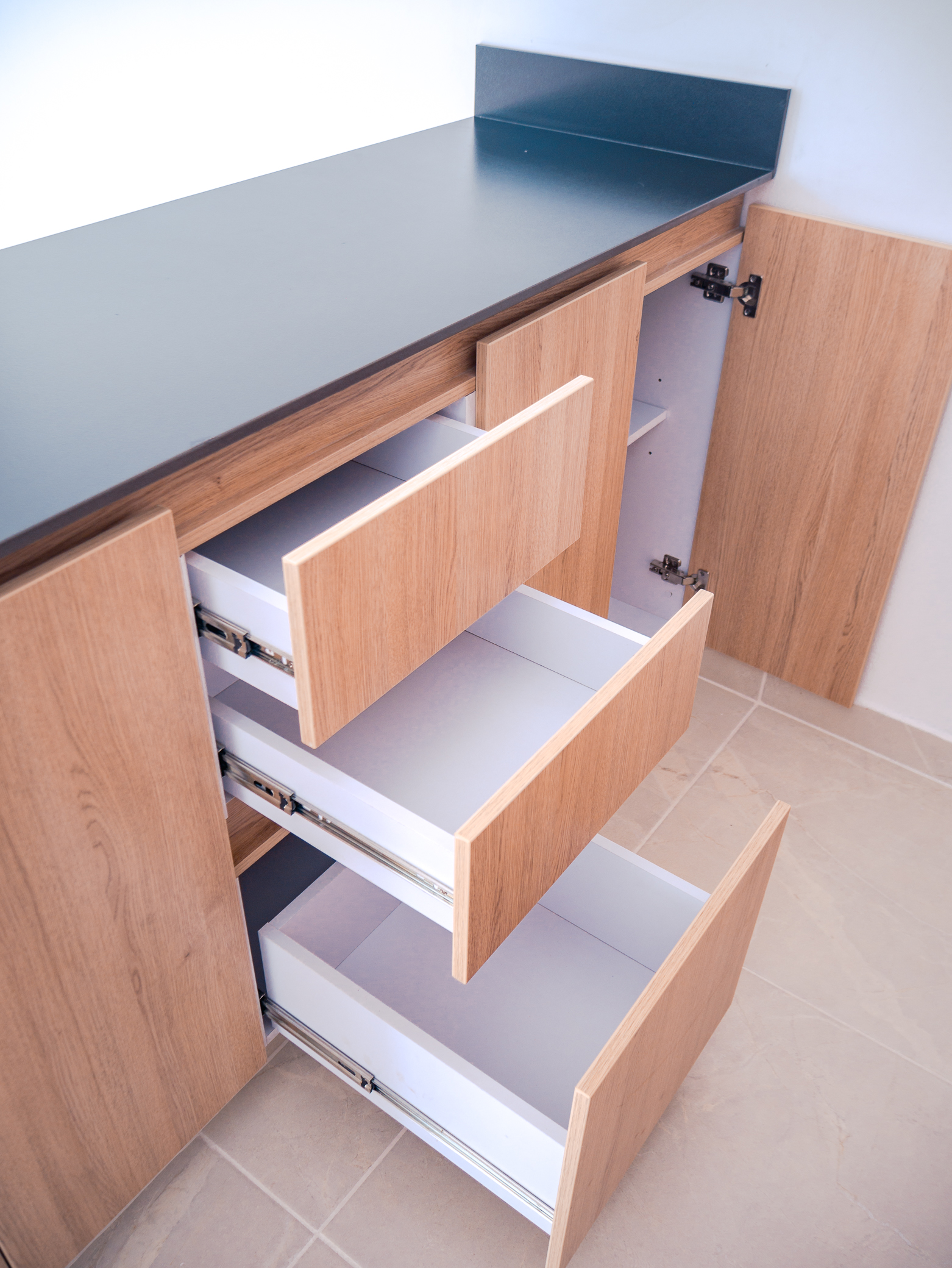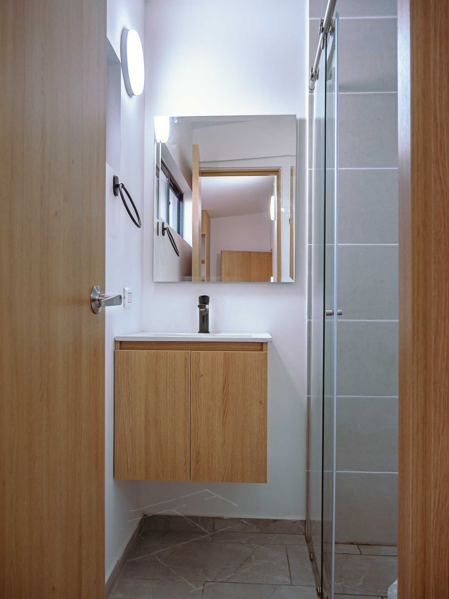 En este proyecto, destacamos la elegancia y el diseño moderno, utilizando tonos pastel en combinación con acabados y accesorios en tonos negros. El uso de piedra sinterizada en el mesón de cocina y la barra aportó un estilo premium y sofisticado, elevando la atmósfera del hogar a un nivel de distinción y refinamiento. Cada elemento fue seleccionado para lograr un equilibrio entre funcionalidad y estética, brindando un espacio elegante y contemporáneo que refleja el gusto y las aspiraciones de sus propietarios.